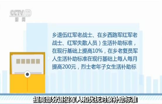 央视网消息:退役军人事务部、财政部日前发出通知,从2019年8月1日起,再次提高部分退役军人和其他优抚对象等人员抚恤和生活补助标准。