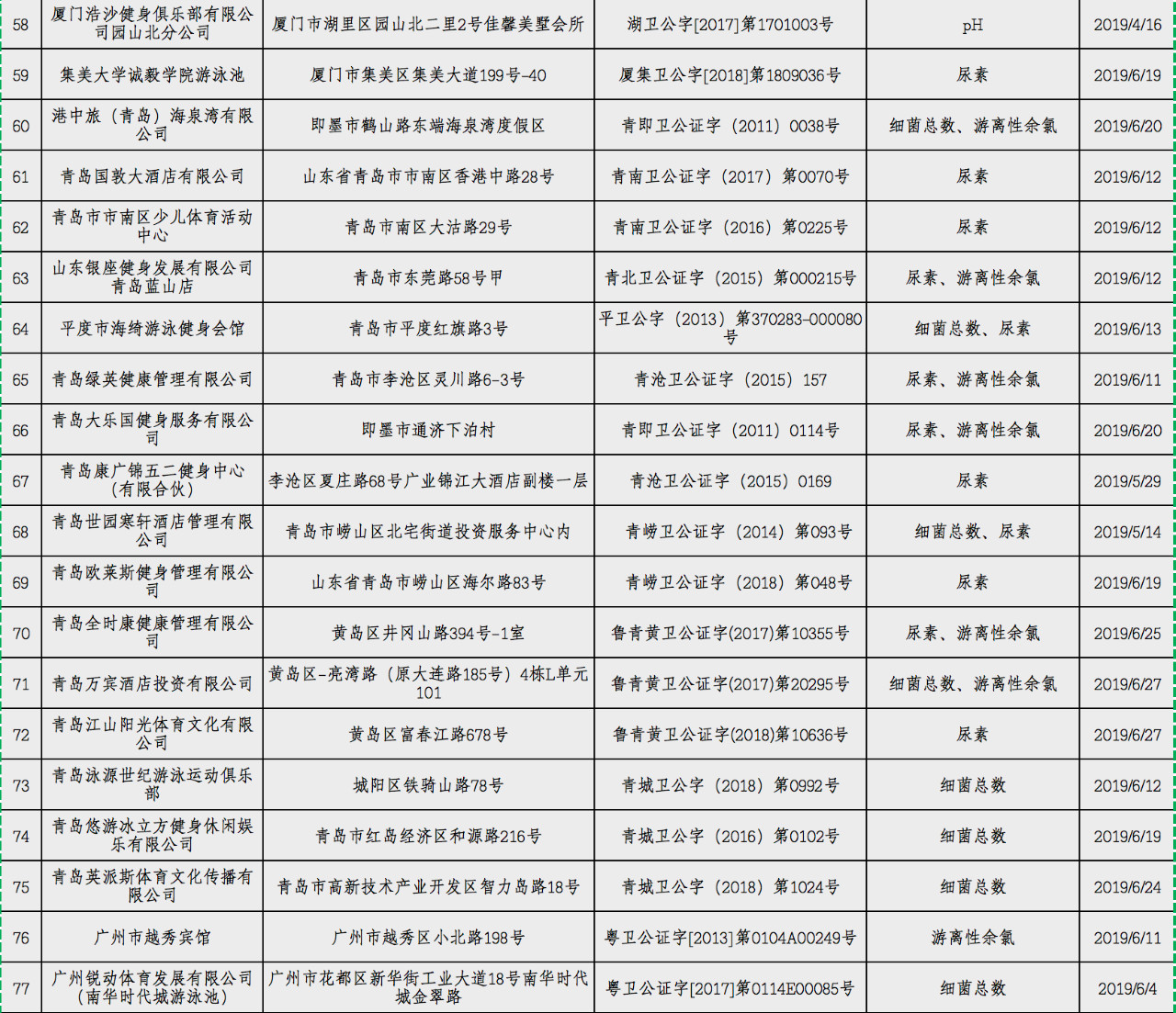 此次国家卫生健康委对游泳场所进行的卫生监督检查,包括对游泳池水细菌总数、大肠菌群、pH、尿素、浑浊度及游离性余氯等项目达标情况进行抽检,并分两批公布抽检结果。对于发现水质卫生不合格的责令限期整改,依法严肃查处。