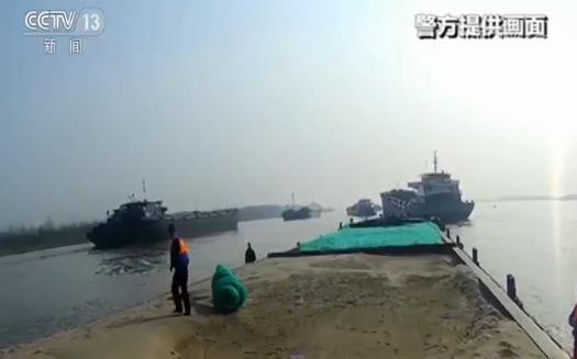 今年以来,一些不法分子昼伏夜出,在当地盗采江砂。今年三月,在接到群众举报后,警方果断采取了抓捕行动。见到执法人员,吸砂船只仓皇逃逸。