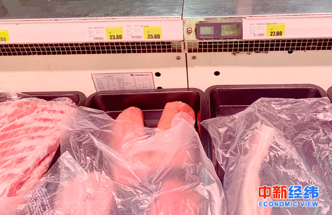 北京海淀区某超市售卖的猪肉 中新经纬实习生范紫琦 摄