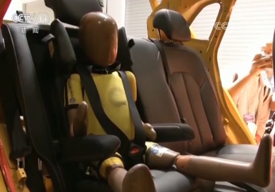 中汽中心实车碰撞试验室主管工程师 刘磊:约束系统可以为儿童提供足够的束缚,保证儿童在事故过程中不会与车辆的其它部件发生碰撞,造成更大的伤害。测试试验之后,车门可以从外面打开,便于车内乘客的逃生以及外部的救援。