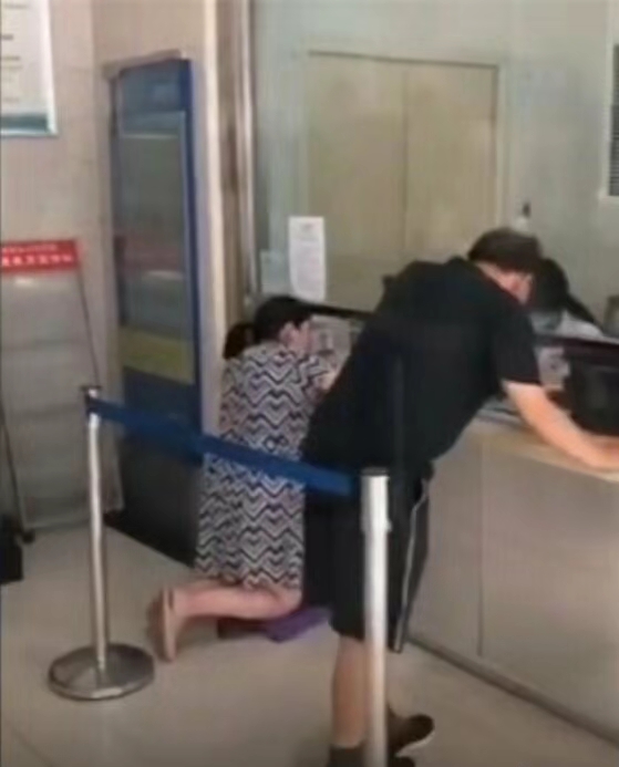 16日,一段网传视频显示,一家医院内,一名女子跪在地上和窗口内的医护人员交流,旁边另一名男子则弯腰和医护人员交流。有网友指出,视频中跪着的女子是一名孕妇,在济源市人民医院缴费期间由于窗口太低只能跪着。