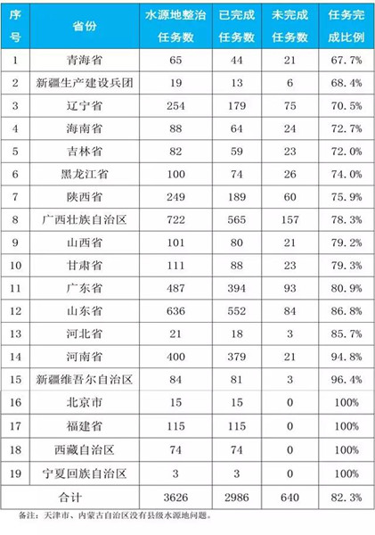 截至8月15日,2019年县级水源地环境问题整治工作情况。(央广网发 生态环境部供图)