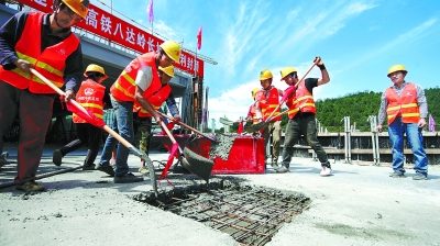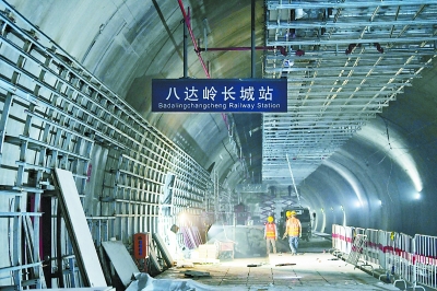 最后一斗500公斤水泥完成浇筑,八达岭站完成封顶。