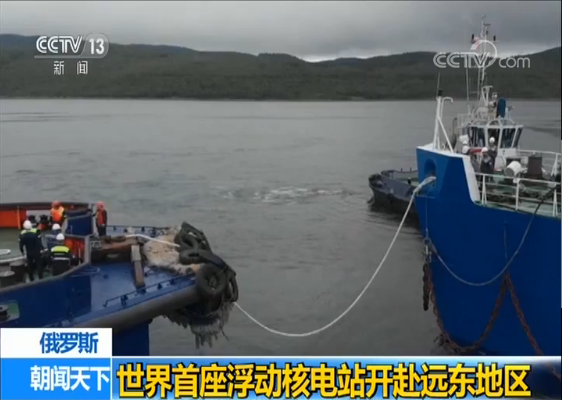 23日,由俄罗斯建造的世界首座浮动核电站——“罗蒙诺索夫院士”号浮动核电站从俄罗斯西北部的摩尔曼斯克港起航,前往位于俄罗斯远东地区楚科奇自治区的佩韦克港。