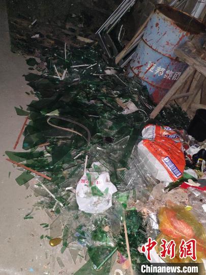 民房旁的路上堆满了玻璃碎渣。王昊昊 摄