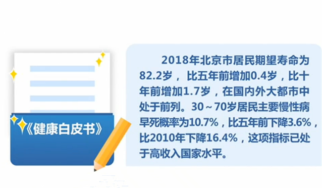 正在阅读:北京市发布2018年度健康白皮书 居民期望寿命为82.2岁