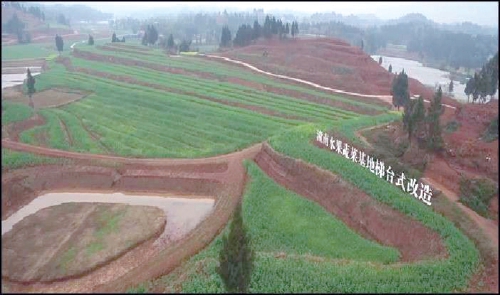 重庆潼南区太和镇2200亩水果蔬菜基地梯台旱地宜机化改造成果。资料图