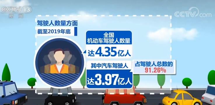 驾驶人数量方面,截至2019年底,全国机动车驾驶人数量达4.35亿人,其中汽车驾驶人达3.97亿人,占驾驶人总数的91.26%。