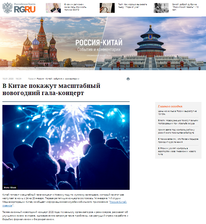 俄罗斯政府机关报《俄罗斯报》:中国最大规模的新年联欢——春晚将如约而至