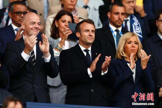 资料图:法国总统马克龙(左二)及夫人布丽吉特。 中新社记者 富田 摄