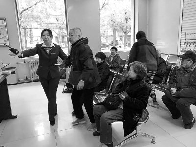 “一天发三四百个号,几乎全是办养老金业务的。其实养老金哪天都能取,老人们就是习惯在这一天来银行碰面,人也越聚越多。”对老人们将银行当做社交场所的情形,大堂经理表示非常理解:“广安门一带是老居民区,也有许多老国企,现在这些老人搬家的搬家,退休的退休,都成了空巢老人,平时可能比较孤独。”