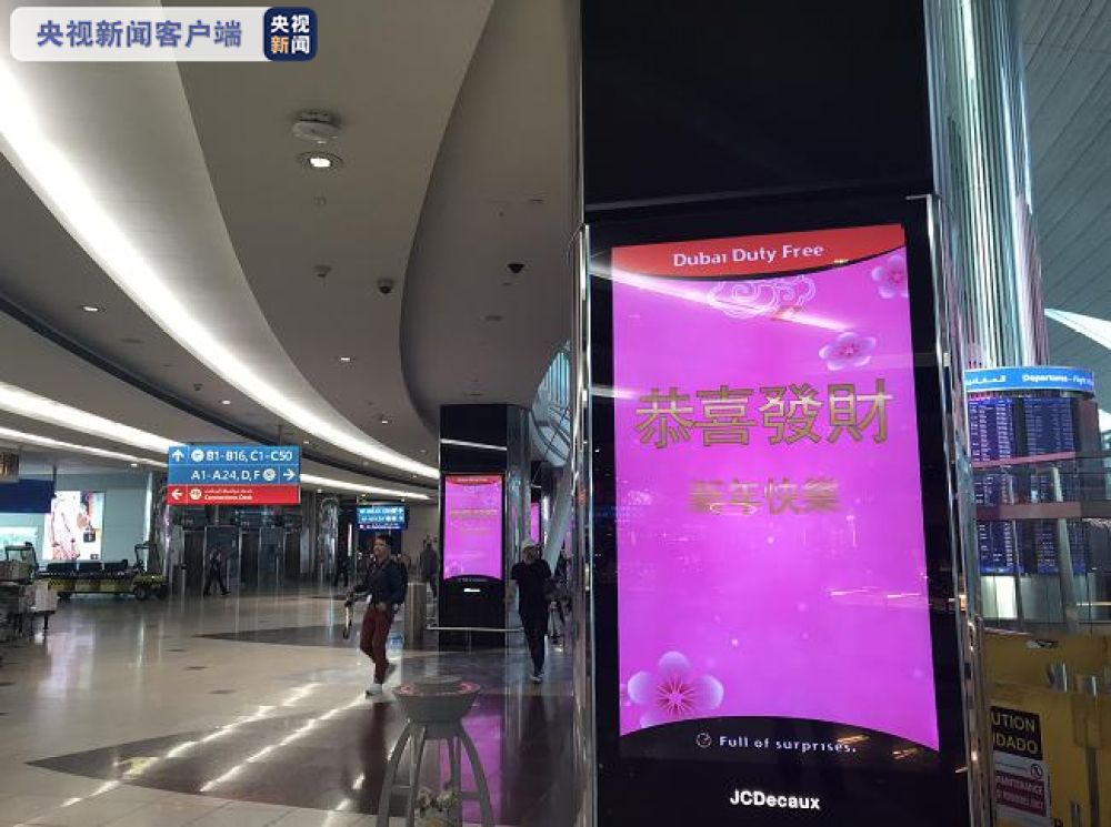 近日,迪拜国际机场内的电视屏幕上已经在循环播放中国中央广播电视总台春晚的宣传片,这个全球客流量最大的机场近日宣布,将在中国农历除夕(1月24日),在机场内全程转播中国中央广播电视总台春晚,这是迪拜机场“喜迎中国新年”系列活动的一项。