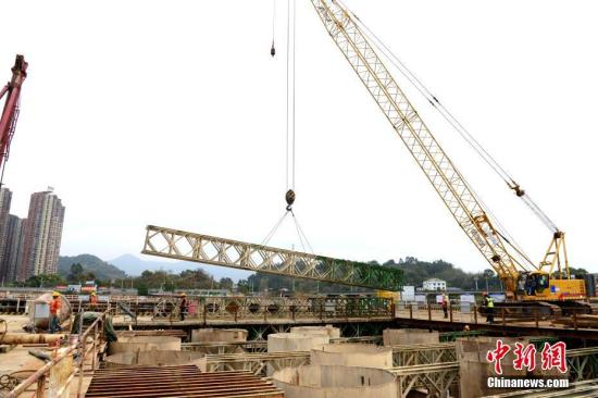 3月3日,福建省闽侯县跨江大桥项目工地上,工人复工后正全力赶工期。中新社记者 王东明 摄