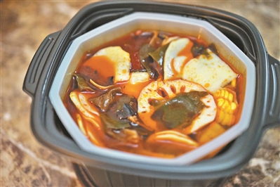“那次我先放发热包,后加水,它反应很快,蒸汽不断往上冒出。我急忙把盛菜的塑料架架上去,一紧张,架子没放好,有一部分插入到下层的水里,石灰水混进了食物。我的手还被蒸汽烫了一下。”伍女士回忆起第一次吃自热火锅时的“翻车现场”,自热菜混入了石灰水,只好整盒丢掉。