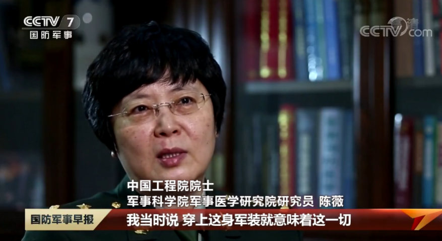 中国工程院院士 军事科学院军事医学研究院研究员 陈薇:记者采访我说,跟SARS非典病毒每天面对面怕不怕?我当时说,穿上这身军装任何事情都是你该做的。这句话脱口而出。