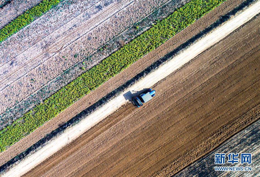 3月20日,河北省武安市大同镇马会村,农民驾驶农机犁地(无人机照片)。新华社记者 王晓 摄