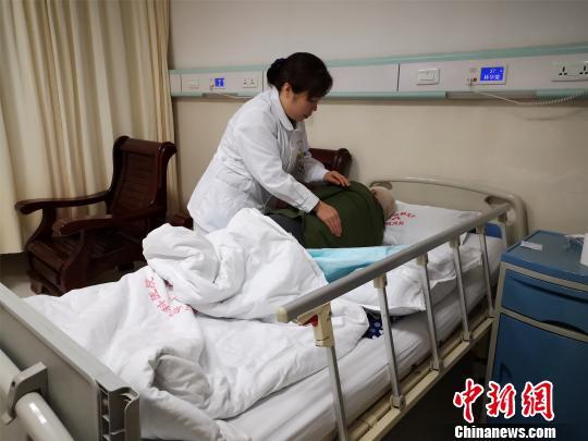 资料图:一名精神科护士帮患者拍背舒缓。 林馨 摄