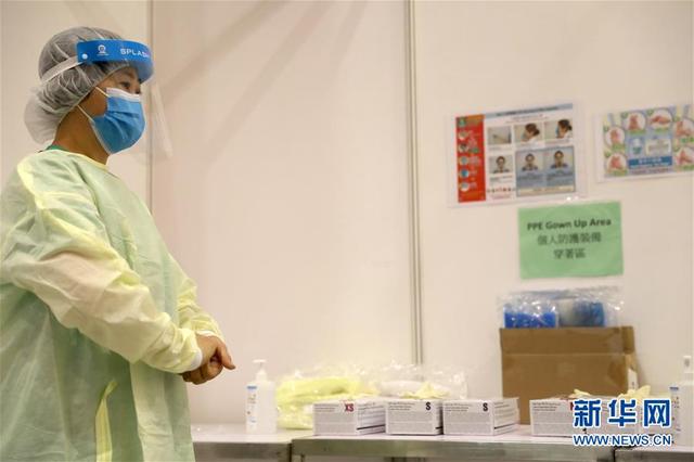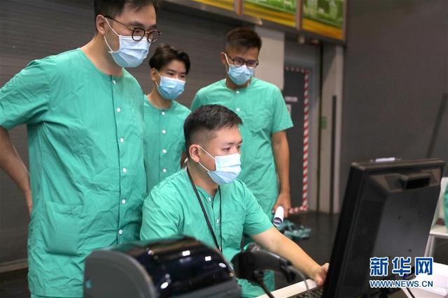 在香港亚洲国际博览馆“方舱医院”的工作人员(8月1日摄)。 新华社记者 吴晓初 摄