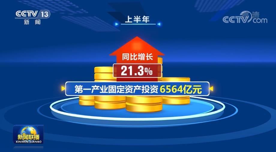 农业投资规模扩大,第一产业固定资产投资6564亿元,同比增长21.3%,分别快于第二、第三产业5个和10.6个百分点。