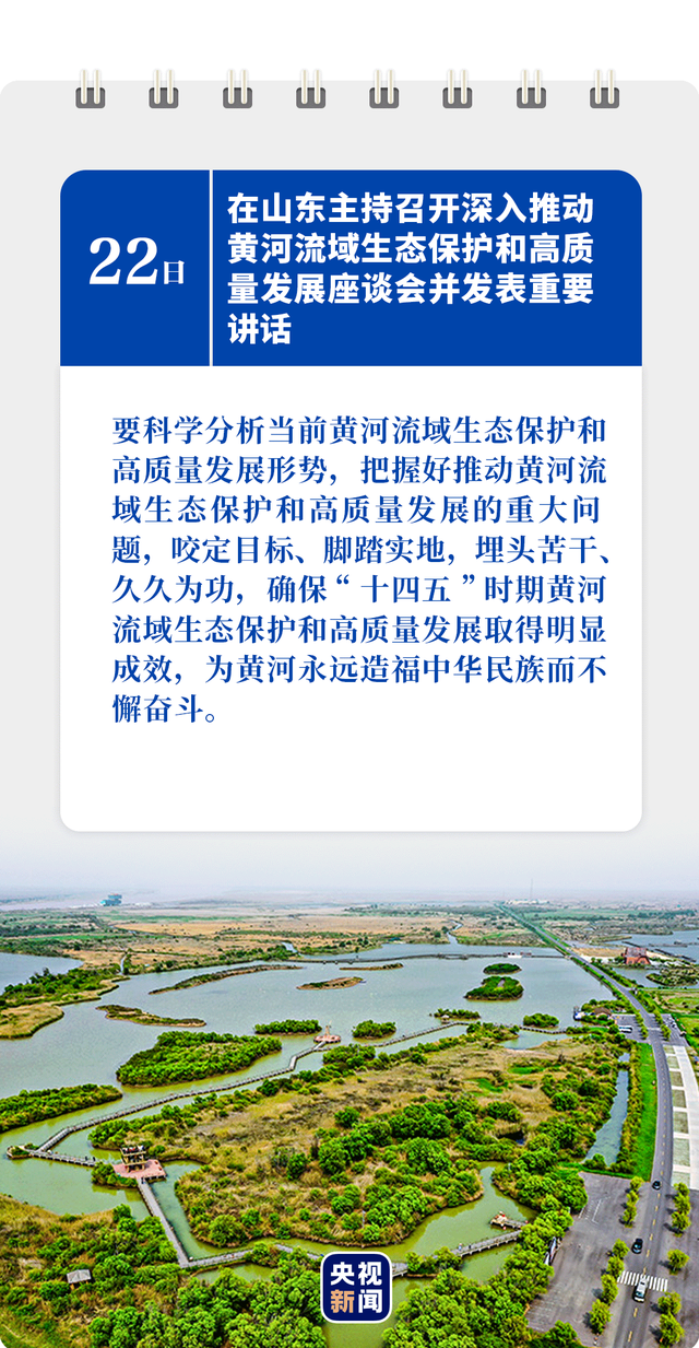 党的十八大以来,总书记一次次将目光投向母亲河,沿黄九省区都留下了他的考察足迹。这次在东营,习近平总书记实地察看黄河河道水情和黄河三角洲湿地生态环境,了解黄河流域生态保护和高质量发展等情况。