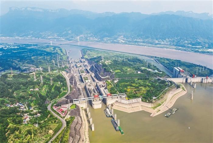 图为7月8日,船舶有序通过三峡五级船闸。新华社发 (郑家裕 摄)