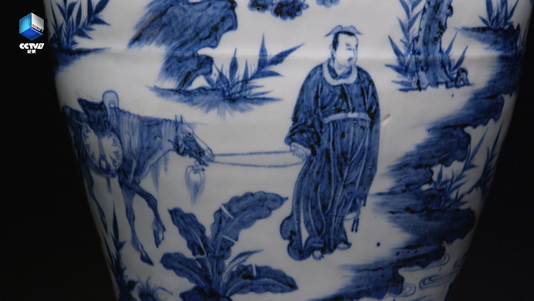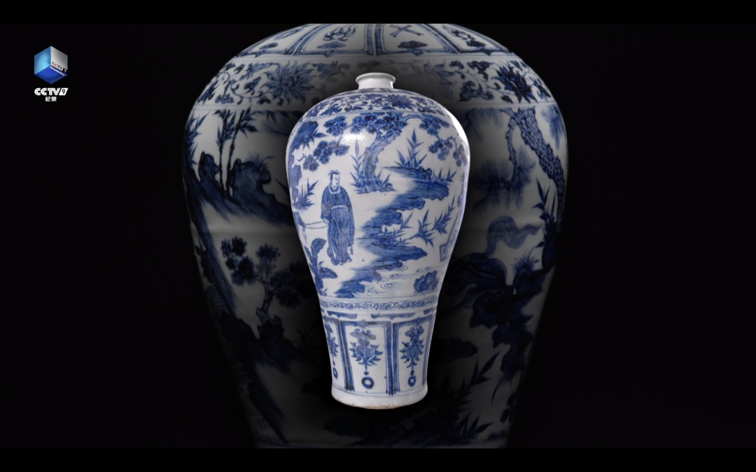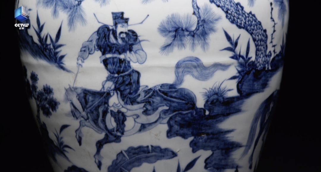在元青花萧何月下追韩信图梅瓶上,从绘制铜钱、海螺的杂宝纹,到“岁寒三友”松、竹、梅,再到莲瓣纹、宝相花纹,全都是来自波斯国的苏麻离青与景德镇高岭土。