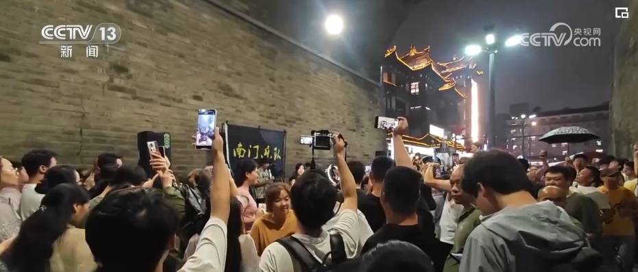 华灯初上,西安古城墙下,年轻的人们聚集在城门洞内青春放歌。歌声在城墙的墙砖上反射,形成了带着历史气息的天然“混响”,这何尝不是穿越了悠悠时光的古今和鸣?