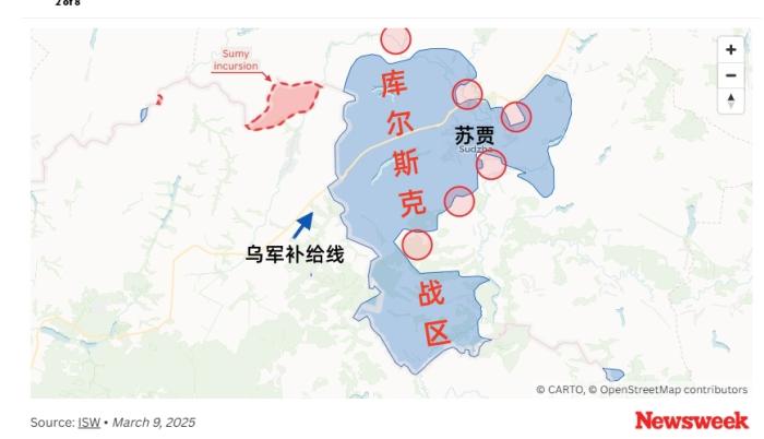 截至3月9日,库尔斯克战况一览。图/美国《新闻周刊》