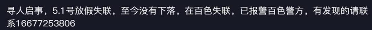 正在阅读:广西百色一女生失联超6天,警方:目前仍在寻找