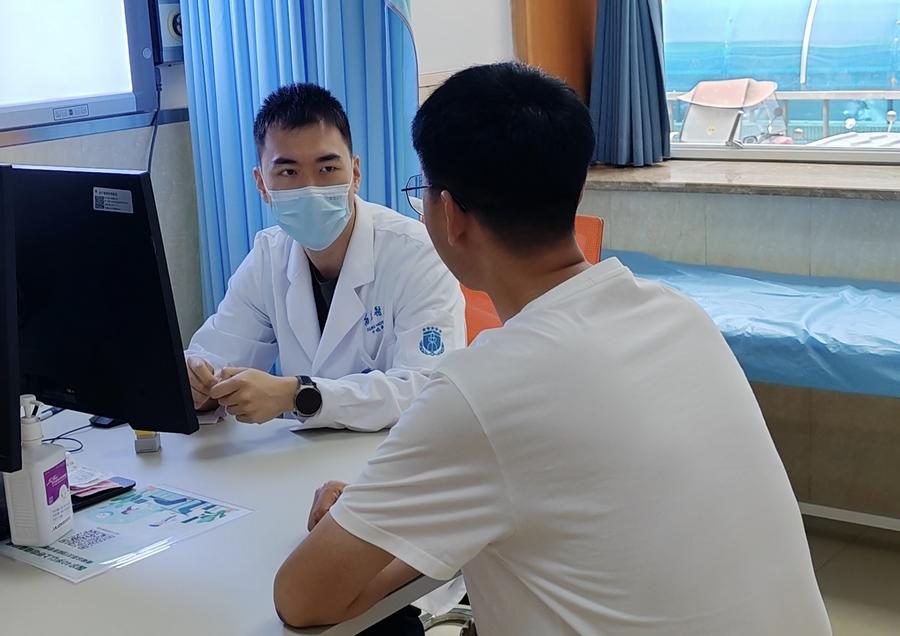 图为空军军医大学西京医院呼吸内科副主任医师吕行为患者问诊。新华社发