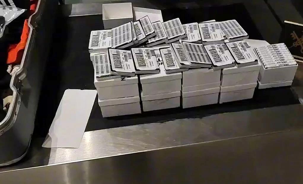 近日,武汉天河机场海关关员在对入境旅客行李物品进行监管时,发现一名选择“无申报通道”入境的旅客行李机检图像异常。经海关关员现场开箱查验,在该旅客行李中查获排列整齐、包装完整的全新境外电话卡19盒,共计1900张。