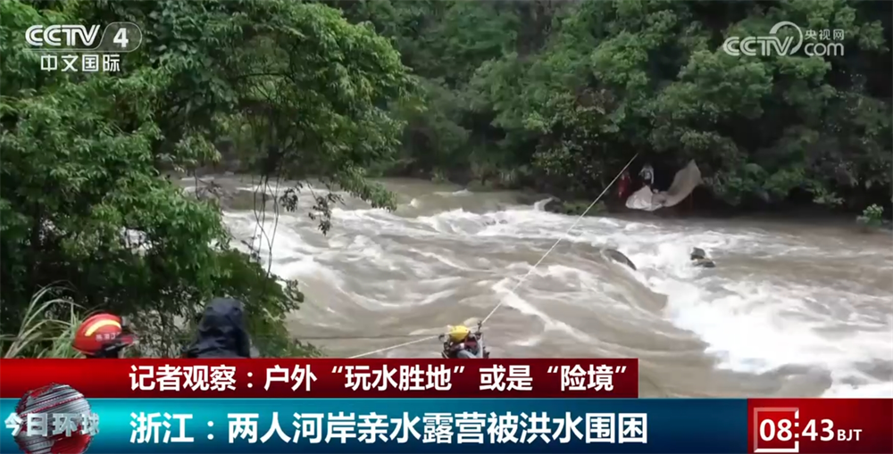 前段时间,受强降雨影响,浙江宁波奉化区溪口镇附近河水水位暴涨,在升纲村附近河岸边露营过夜的两人被水围困。经过近三小时的救援后,两人被救回岸边。记者梳理发现,在同一河段,去年6月也发生过人员夜间突遇涨水被困的险情。