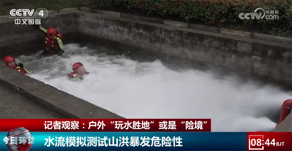 消防人员介绍,暴雨引发的一般山洪水流速度大概为3米—8米每秒。消防员测试,在水流冲击下,体重60公斤的消防员最先失去平衡,仅53秒就摔倒在水池中。随着水流持续加大,体重70公斤的消防员也被冲倒。体重75公斤的试验人员也仅坚持了1分10秒就失去平衡。此后,多组人员进行重复试验,在水流冲击下都在1分钟左右被冲倒。消防员尝试逃离,仅艰难走出几步,就已经无法从湍急的水流中站起身。