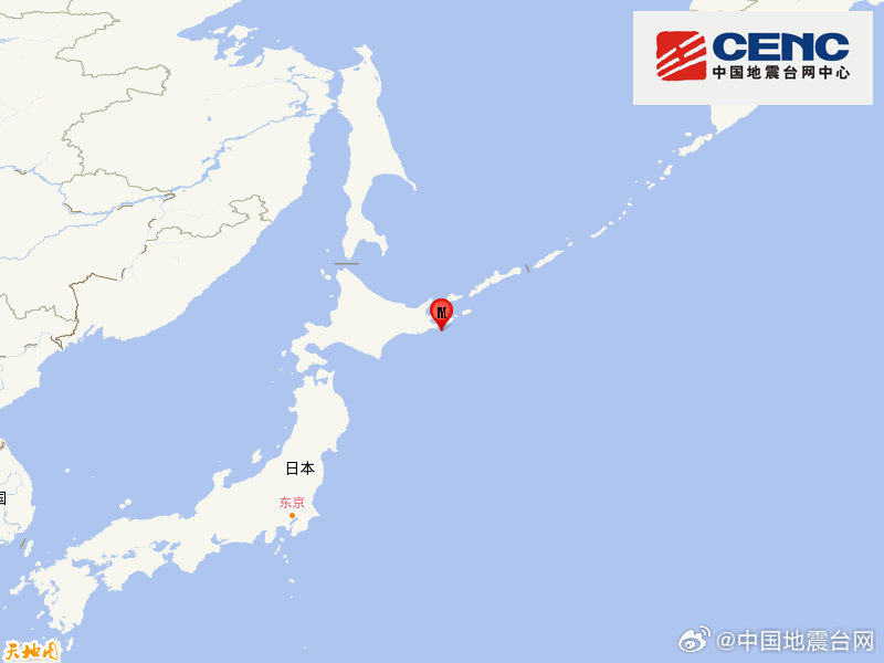 日本北海道附近海域发生5.8级地震,震源深度20千米