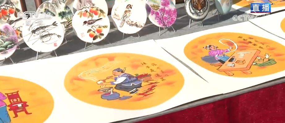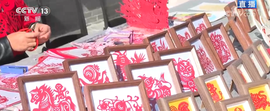 营业首日,一些室内的场景也特意挪到了室外来吸引旅客。这几个摊位上,几位非遗传承人展示着关中代表性项目,比如这个叫户县剪纸,历史悠久,可以追溯到东汉时期。这个是户县农民画,是在关中地区的剪纸、壁画、刺绣等民间艺术的基础上演变而成的。