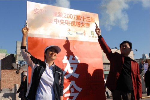 CCTV.com消息(记者郑红伟 卢芳菲北京报道):2007年11月3日早上风和日丽,“安利纽崔莱2007第十三届攀登中央电视塔大赛”在京举行。9点整随着裁判员的一声令下,300多名登高好手展开激烈的角逐。同时,在中央电视塔下进行了许多游艺活动和广场表演,也吸引了大批市民参与。>>>查看比赛组图