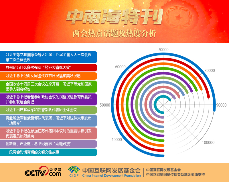 奋进的春天新潮奔涌,冲刺全新高度的力量澎湃涌动。央视网“智闻”系统提取全国两会期间新闻热榜,为我们观察中国发展脉动提供了全景视窗。