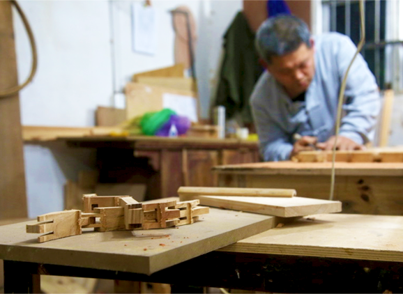 已经67岁的老艺人汤智欧评价说,榫卯结构千变万化,无穷无尽,背后是高超的木工技艺支撑,同时还有极高的艺术价值。