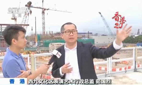 西九文化区表演艺术行政总监 茹国烈:“前面这第一个场地就是戏曲中心,旁边就是我们正在盖的高铁站,高铁站大概2018年底,跟戏曲中心差不多同期开幕的。通常最好的地段不是给文化的,一方面是很幸福,另一方面也有压力啊,为什么人家要把最好的地段给你文化艺术,我们一定要把最好的交出来。”