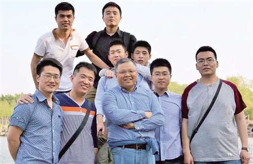 黄大年(前排中)与学生外出徒步(资料图)