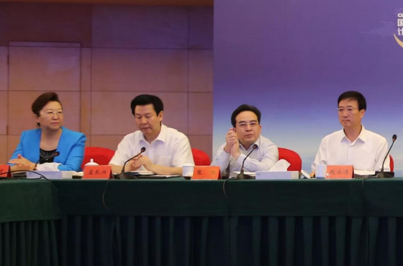 由左至右:新疆维吾尔自治区党委常委、宣传部部长田文,陕西省委常委、宣传部部长庄长兴,重庆市委常委、宣传部部长张鸣,宁夏回族自治区党委常委、宣传部部长赵永清