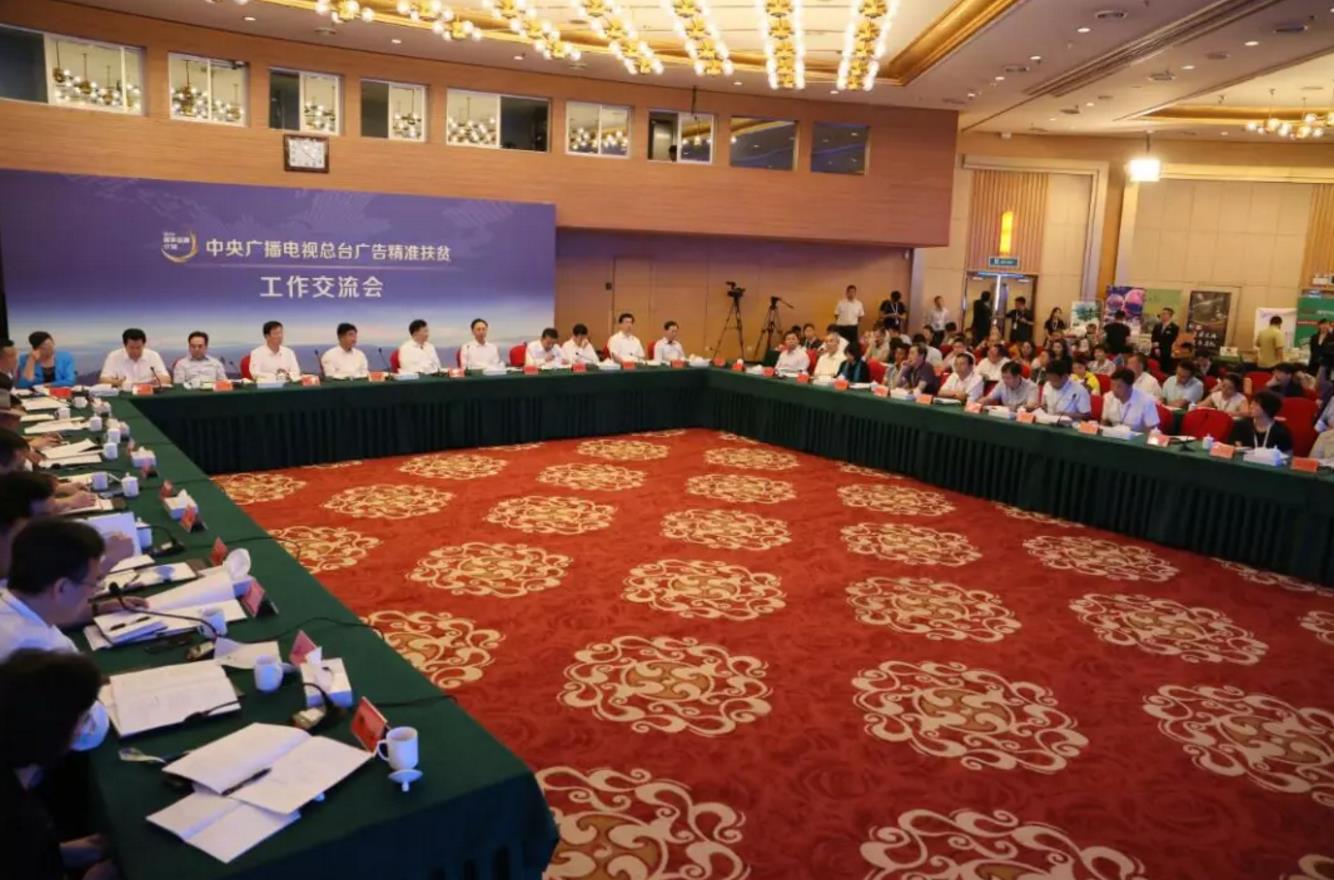 6月29日,中央广播电视总台“广告精准扶贫”工作交流会在京召开,会上发布了三大扶贫举措。中宣部副部长、中央广播电视总台台长慎海雄,中央广播电视总台副台长阎晓明,福建省委常委、秘书长、宣传部部长梁建勇,湖南省委常委、宣传部部长蔡振红,重庆市委常委、宣传部部长张鸣,贵州省委常委、宣传部部长慕德贵,陕西省委常委、宣传部部长庄长兴,青海省委常委、宣传部部长张西明,宁夏回族自治区党委常委、宣传部部长赵永清,新疆维吾尔自治区党委常委、宣传部部长田文,中央电视台分党组副书记、副台长魏地春,中央电视台副总编辑张宁等出席会议。来自“广告精准扶贫”覆盖区域的一线扶贫干部、农户代表、农科人员参加会议。