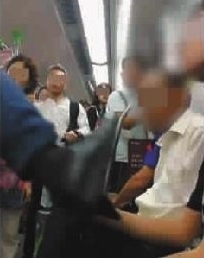 ■ 地铁上男子抬脚猛踹小伙 视频截图