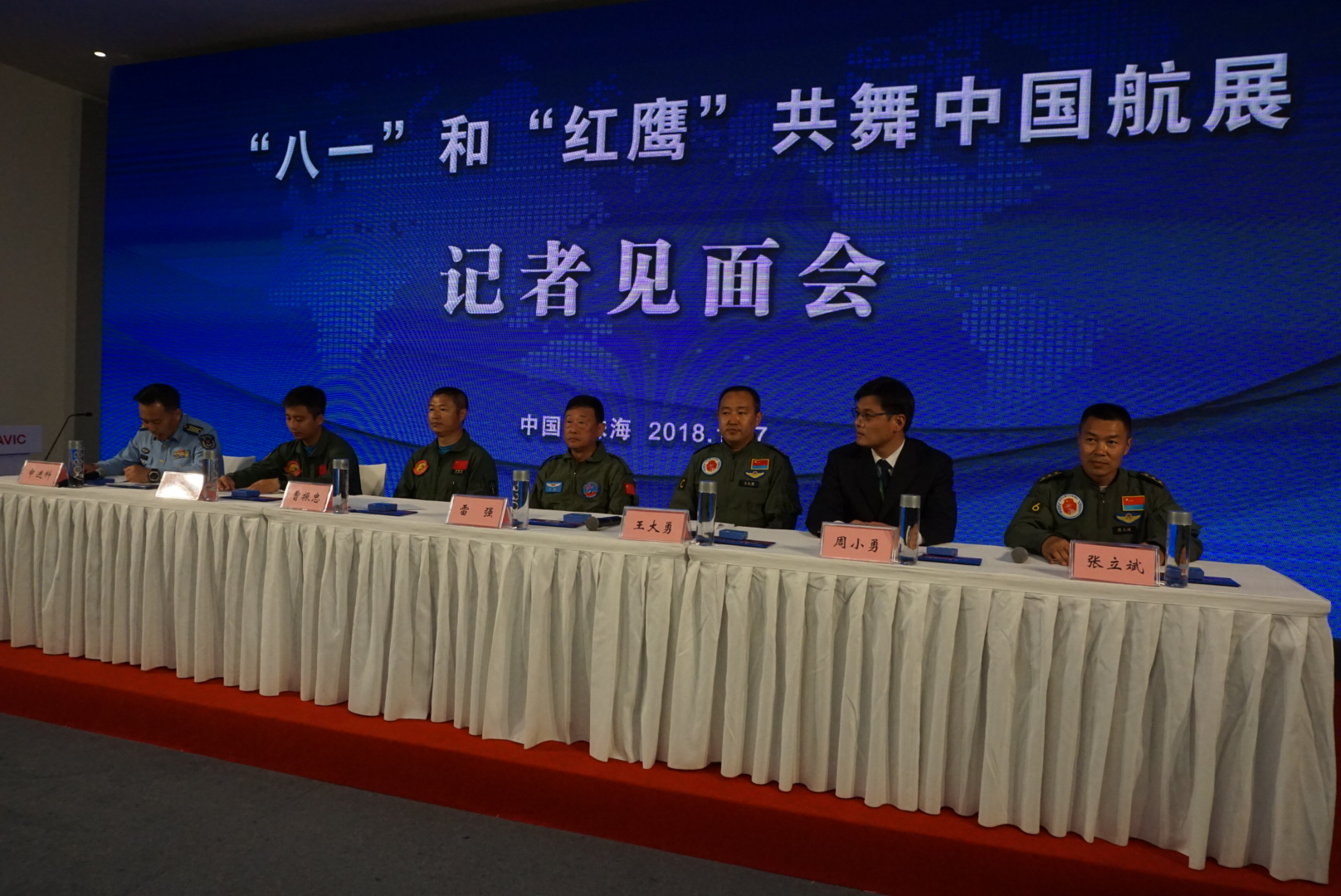 图说:“八一”和“红鹰”共舞中国航展记者见面会