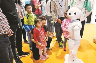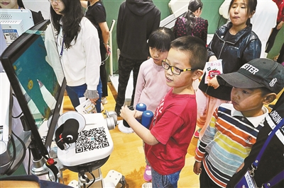 ▲“小达”机器人吸引了众多小观众