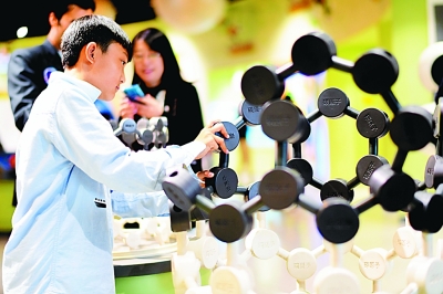 市民在黑龙江省科技馆体验科普设备。新华社发