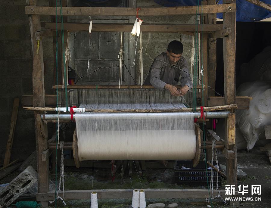 7月21日,工匠在印控克什米尔首府斯利那加以南70公里的一个村庄制作手工披肩。 新华社 资料图