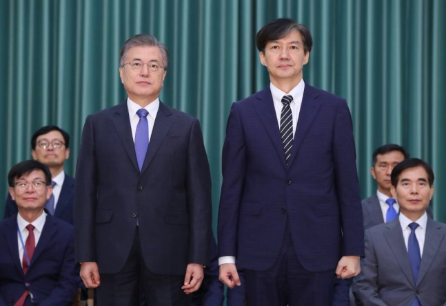 9月9日,文在寅不避负面新闻,坚持任命曹国为法务部长官。当天,他解释说,曹国协助他推进权力机构改革并取得成就,因而委以重任,把这项改革进行到底。(刘强)