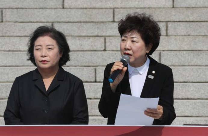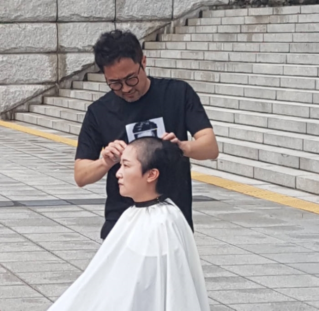 第二天(11日),70岁的自由韩国党女议员朴仁淑、58岁的女政客金淑香也加入了剃发抗议的行列。